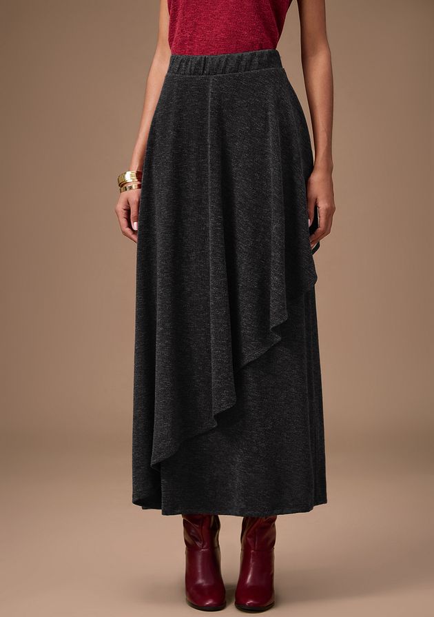 Saia Maria.Valentina Evasê Alta Midi Preto