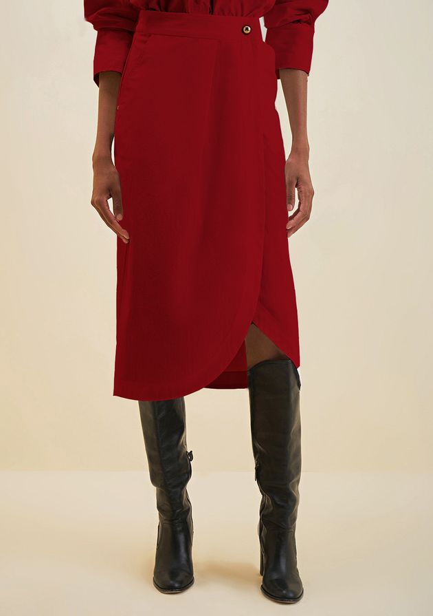 Saia Morena Rosa Evasê Alta Midi Bordo