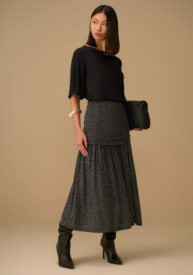 Saia Maria.Valentina Evasê Alta Longa Azul