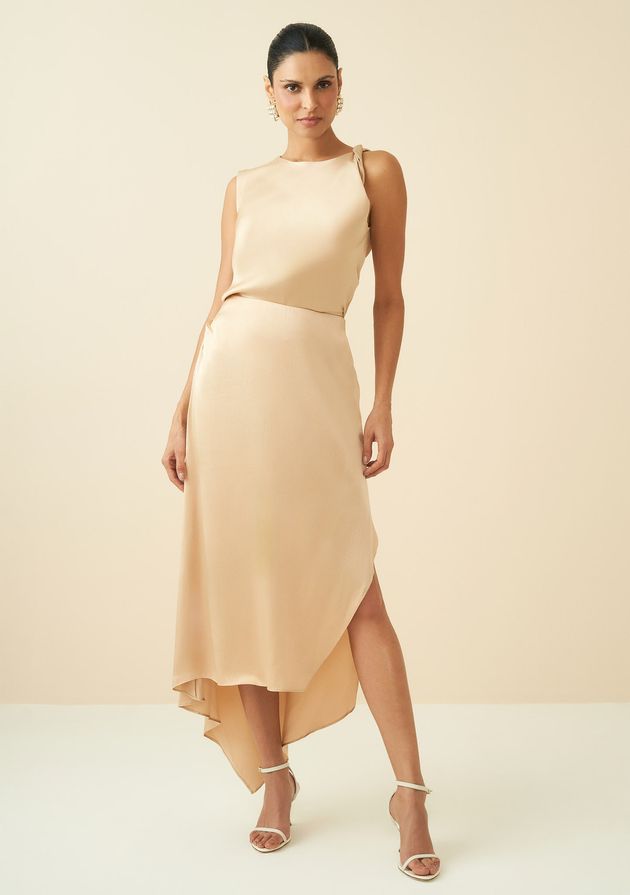 Saia Maria.Valentina Midi Fluida Com Drapeado Bege