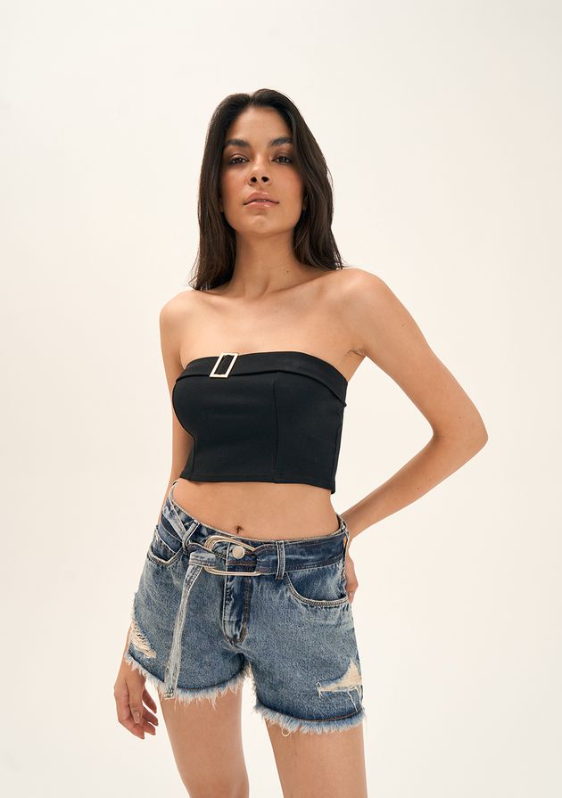 Shorts Maria.Valentina Clássico Detalhe Strass Jeans