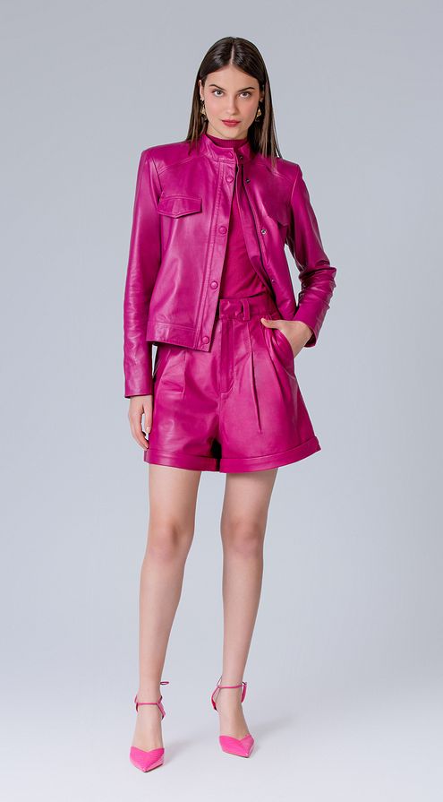 Shorts Maria.Valentina Linha A Com Pregas Rosa