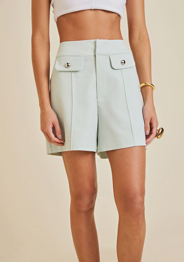 Shorts Morena Rosa Alfaiataria Com Bolso Azul