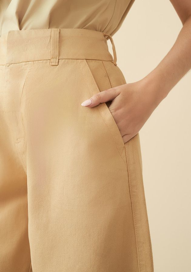 Bermuda Maria.Valentina Evasê Bolso Faca Bege
