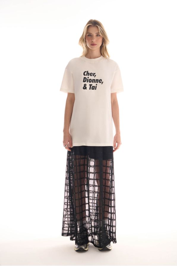 TamanhoMPPPAdicionar à sacolaCamiseta Maria.Valentina Solta Decote Careca Manga Curta Padrão Off White