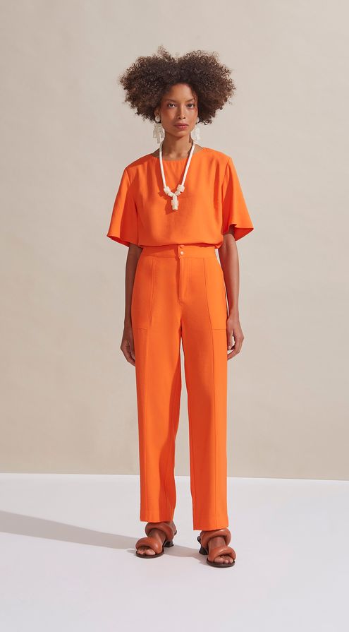 T-Shirt Maria.Valentina Gola Canoa Com Colar Laranja