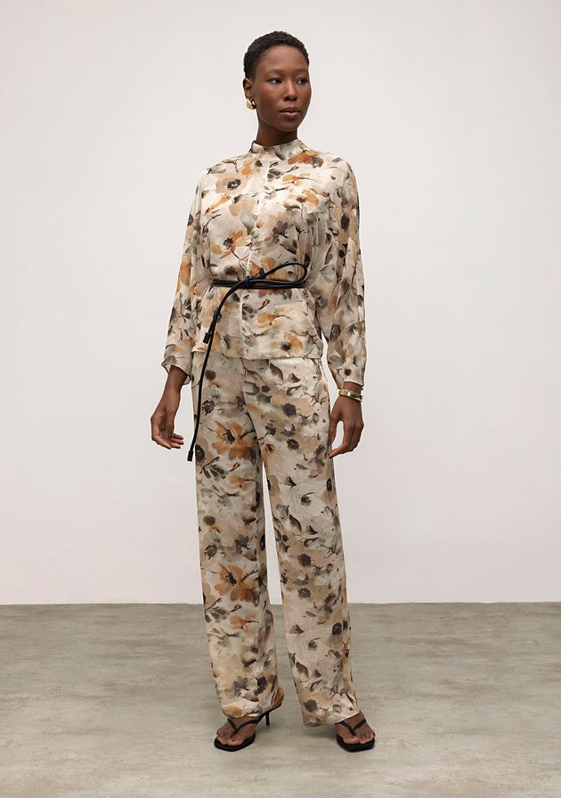 Calça Iódice Wide Cós Alto Com Pence Amarelo