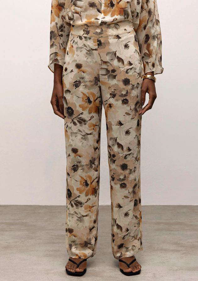 Calça Iódice Reta Cós Alto Zíper Lateral Bege