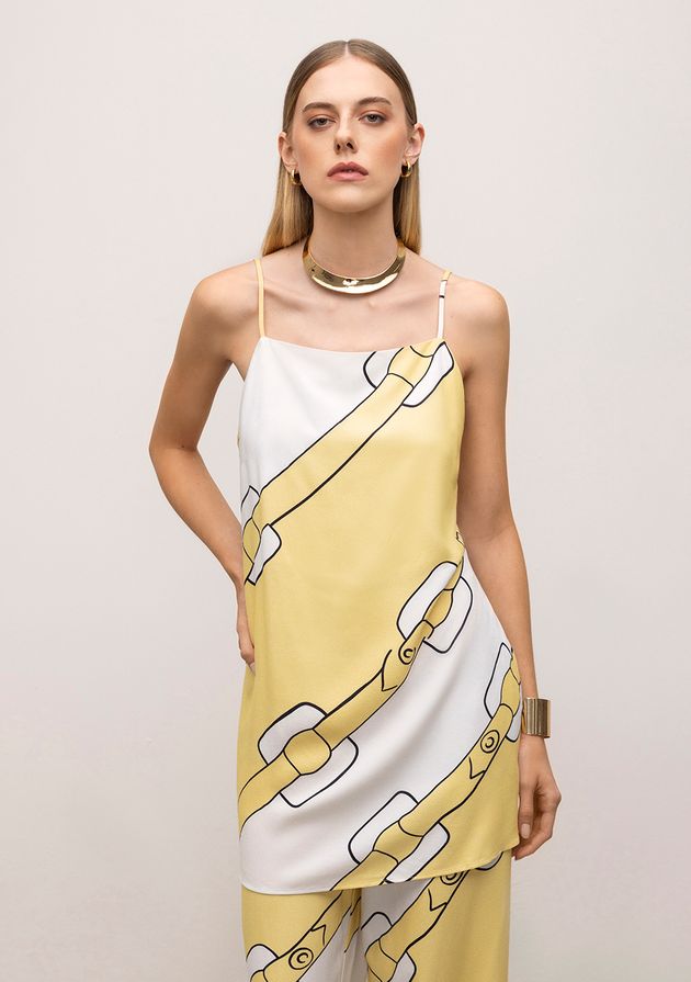 Regata Iódice Decote Reto Abertura Lateral Amarelo