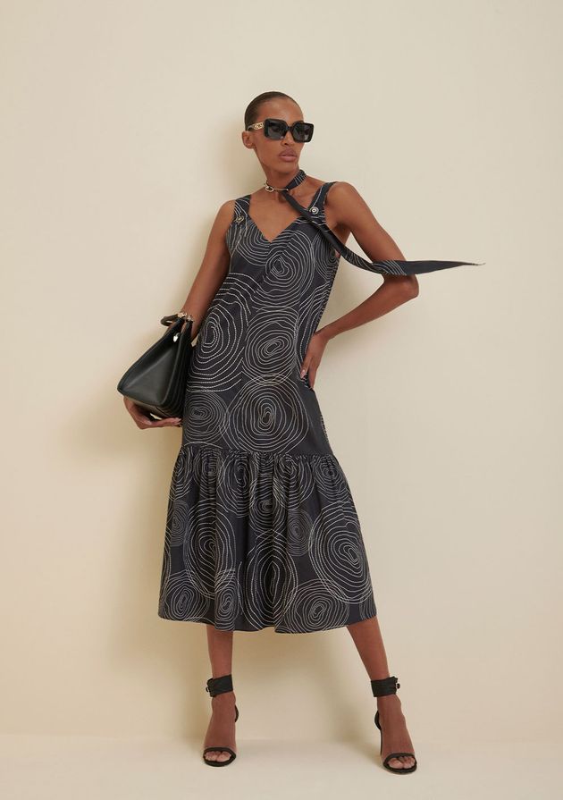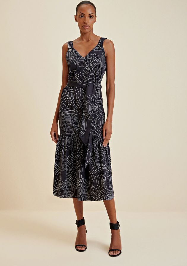 Vestido Iódice Midi Decote Canoa Com Recorte Amarelo