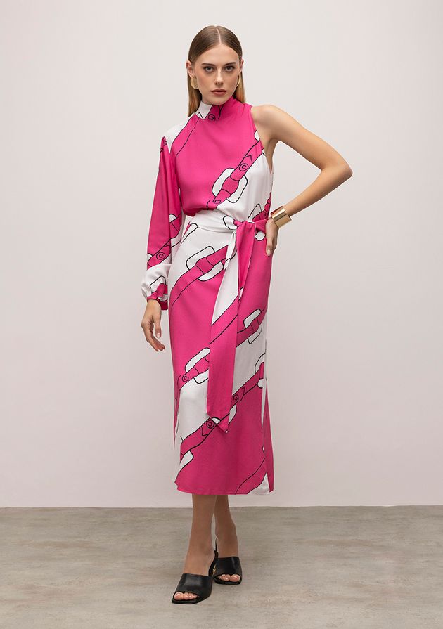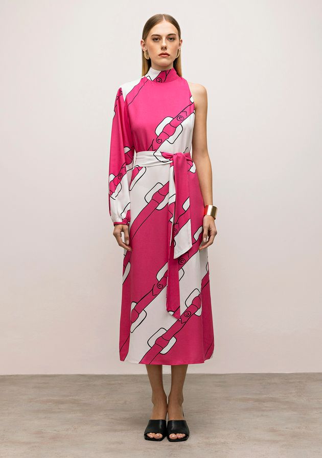 Vestido Iódice Midi Decote Redondo Com Faixa Pink