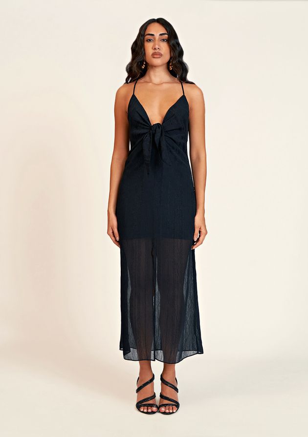 Vestido Zinco Midi Decote V Com Fenda Preto