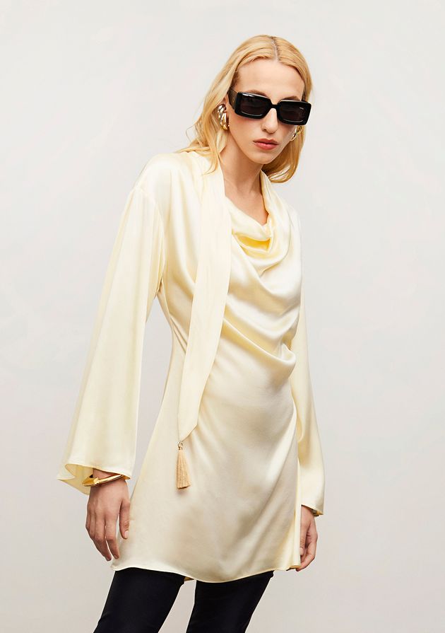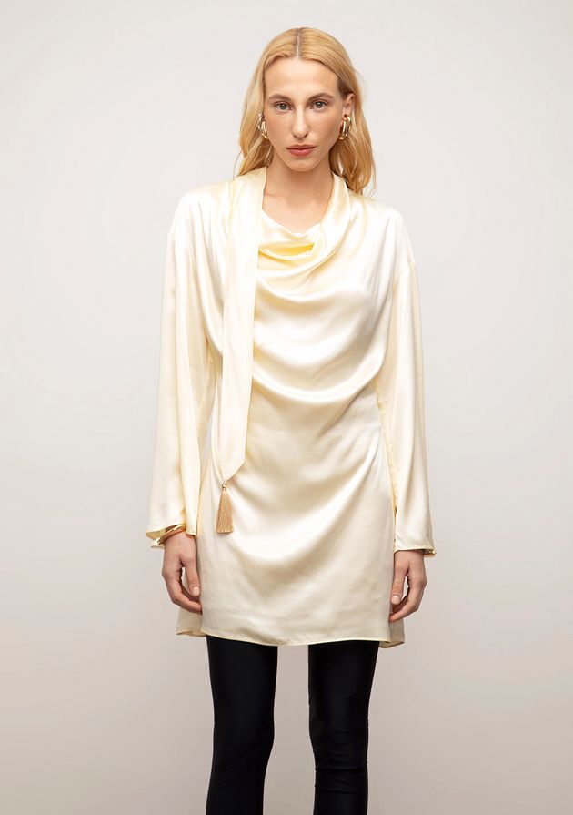 Vestido Iódice Solto Polo Manga Longa Longo Bege