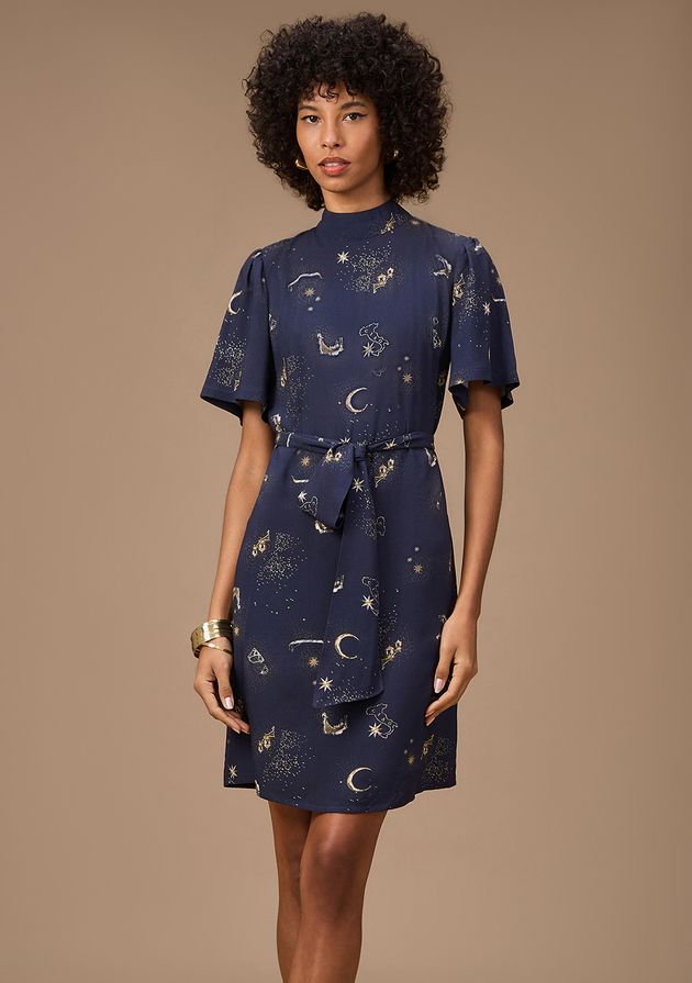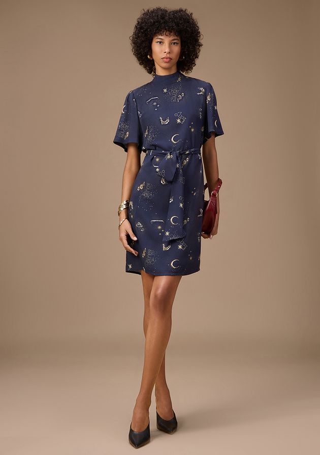 Vestido Maria.Valentina Ajustado Gola Alta Manga Curta Curto Azul Escuro