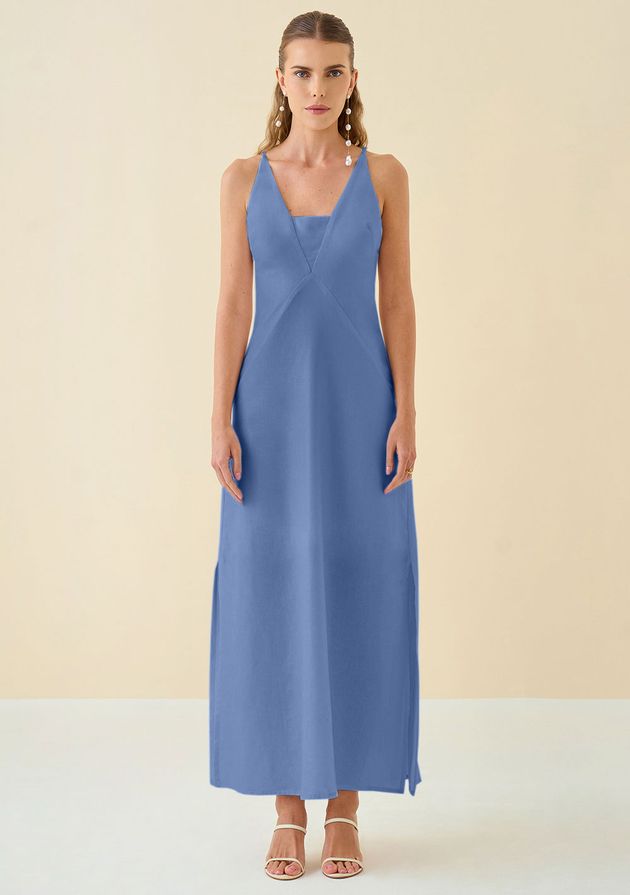 Vestido Iódice Midi Decote Redondo Detalhe Pence Azul