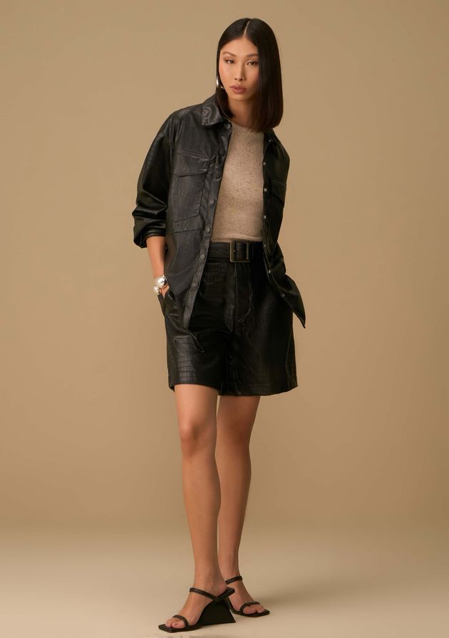 Blusa Iódice Solta Decote V Manga Longa Padrão Preto