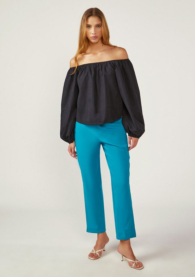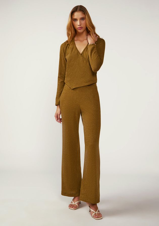 Blusa Zinco Solta Decote Careca Manga Longa Padrão Verde