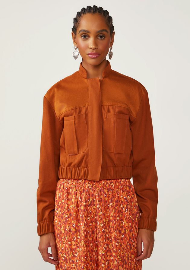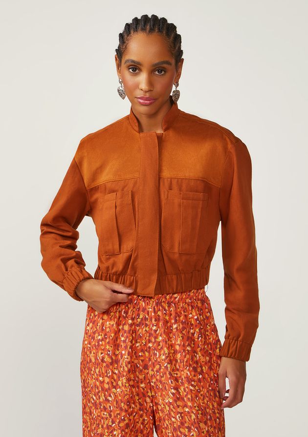 Jaqueta Zinco Solta Manga Longa Padrão Marrom