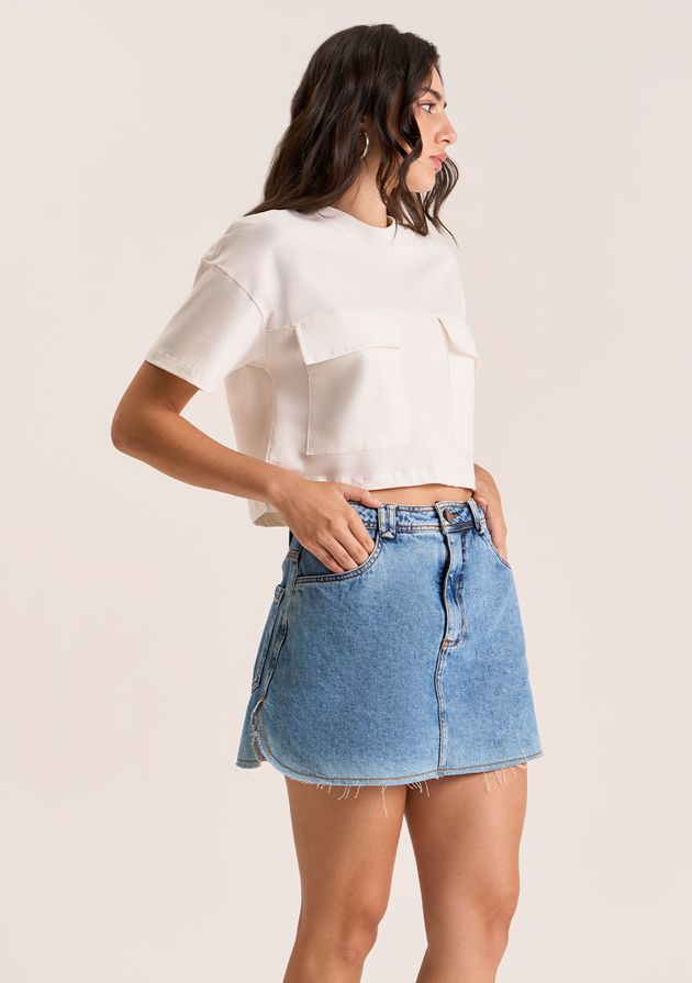 Camisa Zinco Ajustada Decote V Manga Longa Cropped Azul