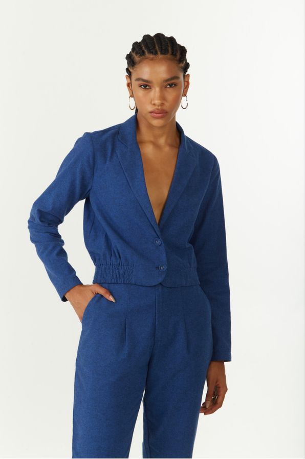 Blazer Zinco Ajustado Manga Longa Cropped Azul