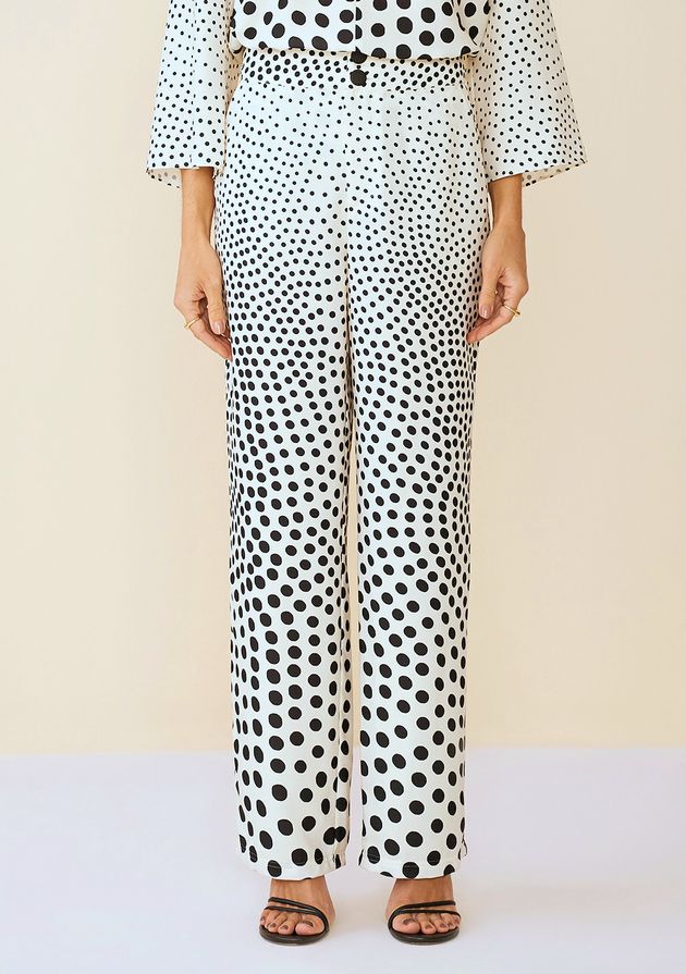Calça Iódice Reta Cós Alto Com Amarril Laranja