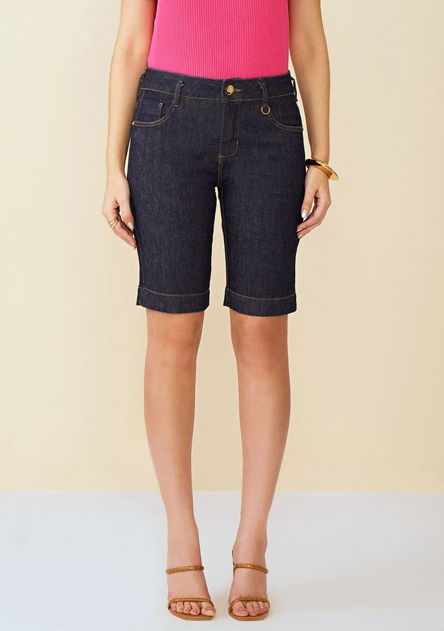 Bermuda Maria.Valentina Ciclista Detalhe Pesponto Jeans
