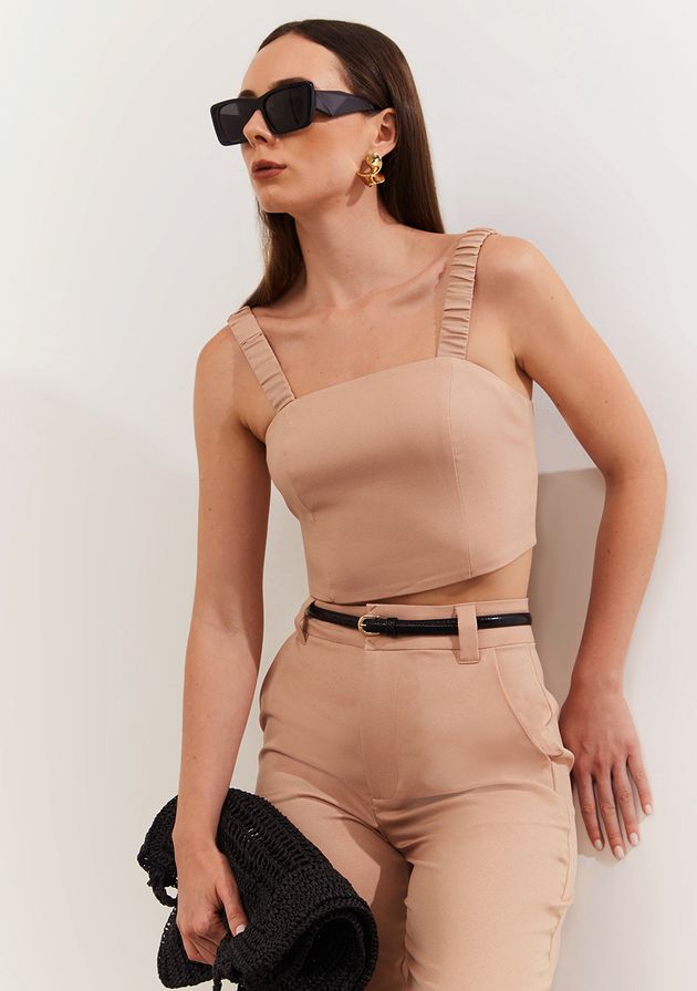 Blusa Morena Rosa Decote V Alça Amarração Frente Preto