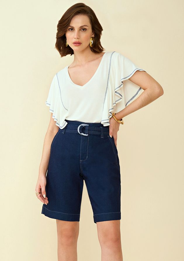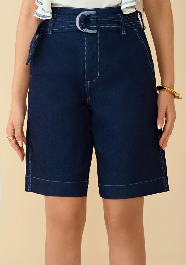Bermuda Maria.Valentina Alfaiataria Com Cinto Jeans