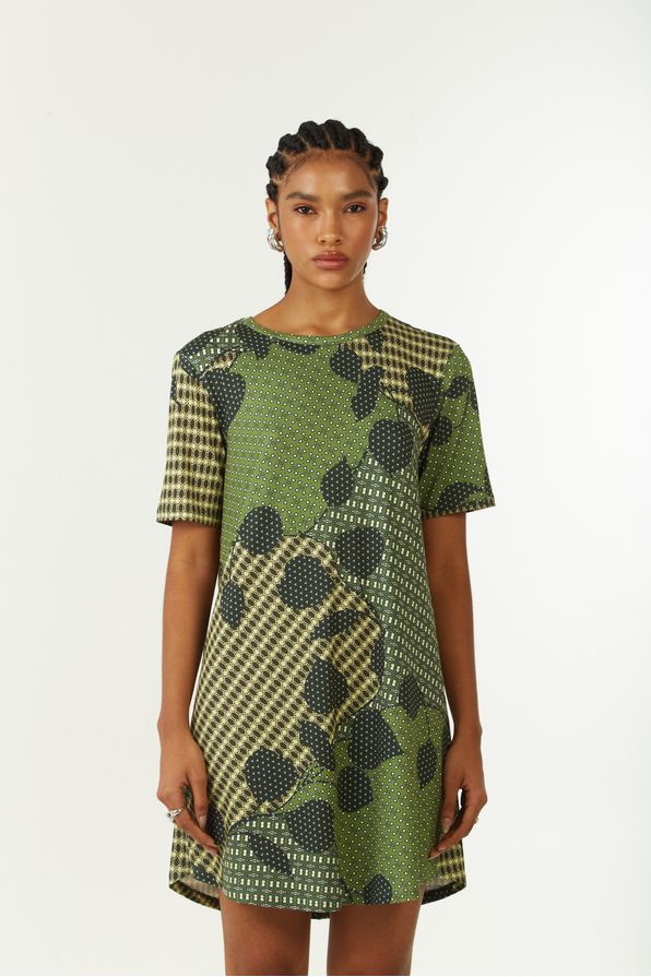 Vestido Zinco Solto Decote Careca Manga Curta Curto Verde