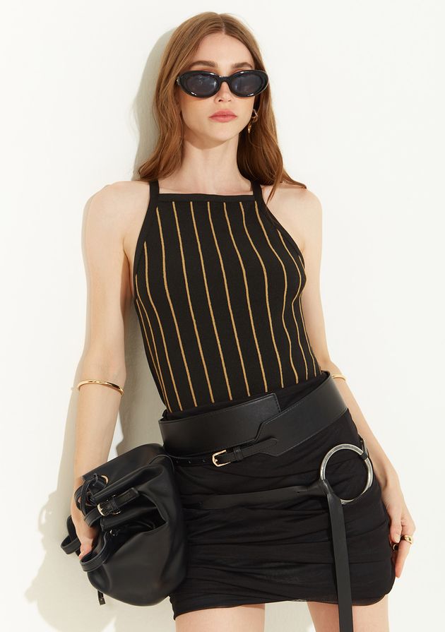 Regata Zinco Ajustada Decote Quadrado Padrão Preto