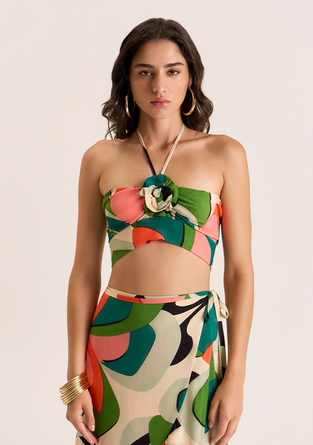 Top Zinco Cropped Manga Removível Com Lastex Verde