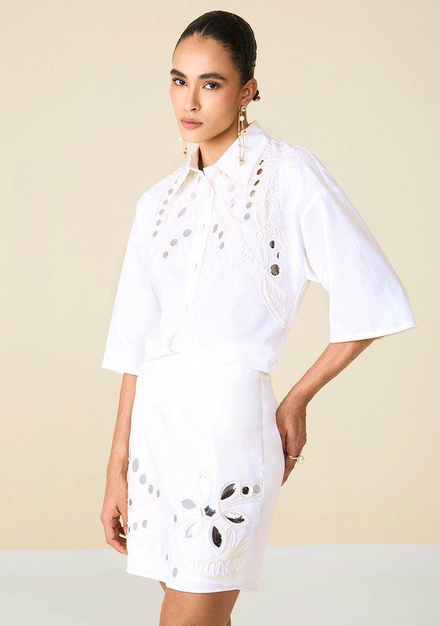 Blusa Maria.Valentina Solta Ombro A Ombro Manga Curta Padrão Off White