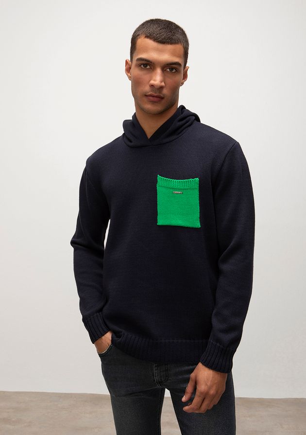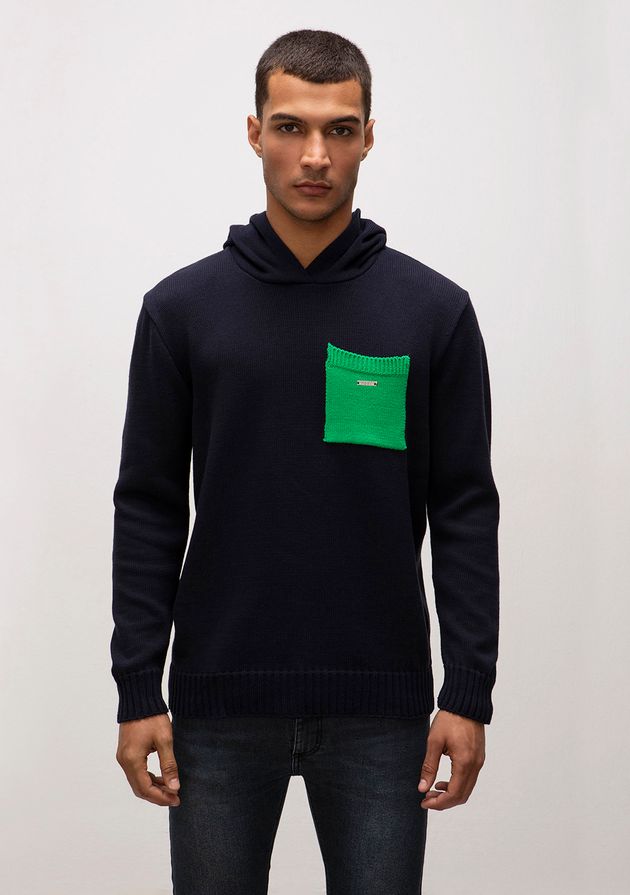 Blusa Capuz Manga Longa Tricôt Azul Marinho