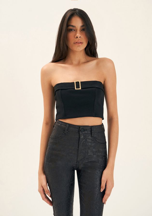 Top Zinco Faixa Tomara Que Caia Com Fivela Preto