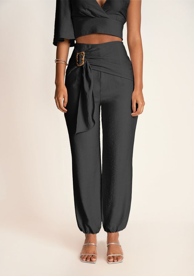 Calca Zinco Jogger Cintura Alta Com Fivela Preto