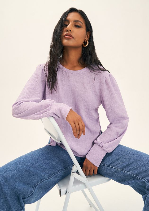 Blusa Zinco Decote Redondo Manga Longa Detalhe Costas Lilas