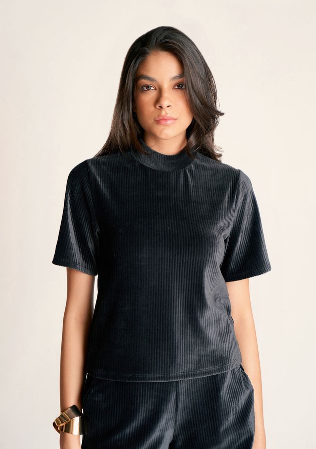 Blusa Zinco Gola Alta Manga Curta Básica Preto