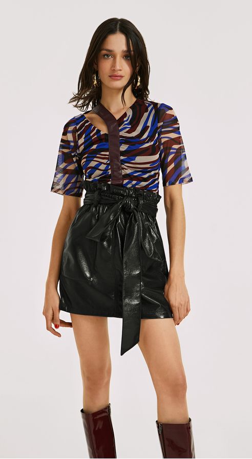 Saia Morena Rosa Curta Reta Com Faixa Preto