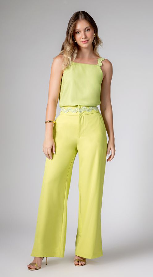 Tamanho3638Adicionar à sacolaCalca Maria.Valentina Alfaiataria Cós Intermediário Detalhe Aviamento Verde Claro