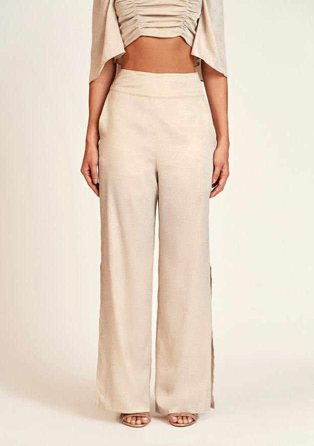 Calca Zinco Pantalona Cós Largo Abertura Lateral Cru