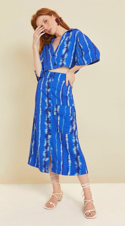Saia Maria.Valentina Midi Linha A Abertura Frente Azul