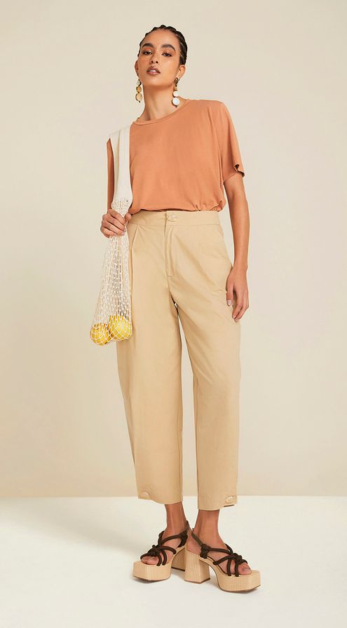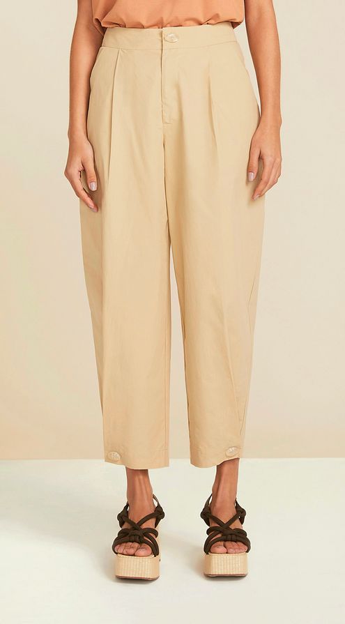Calca Maria.Valentina Bag Cós Alto Com Botão Bege