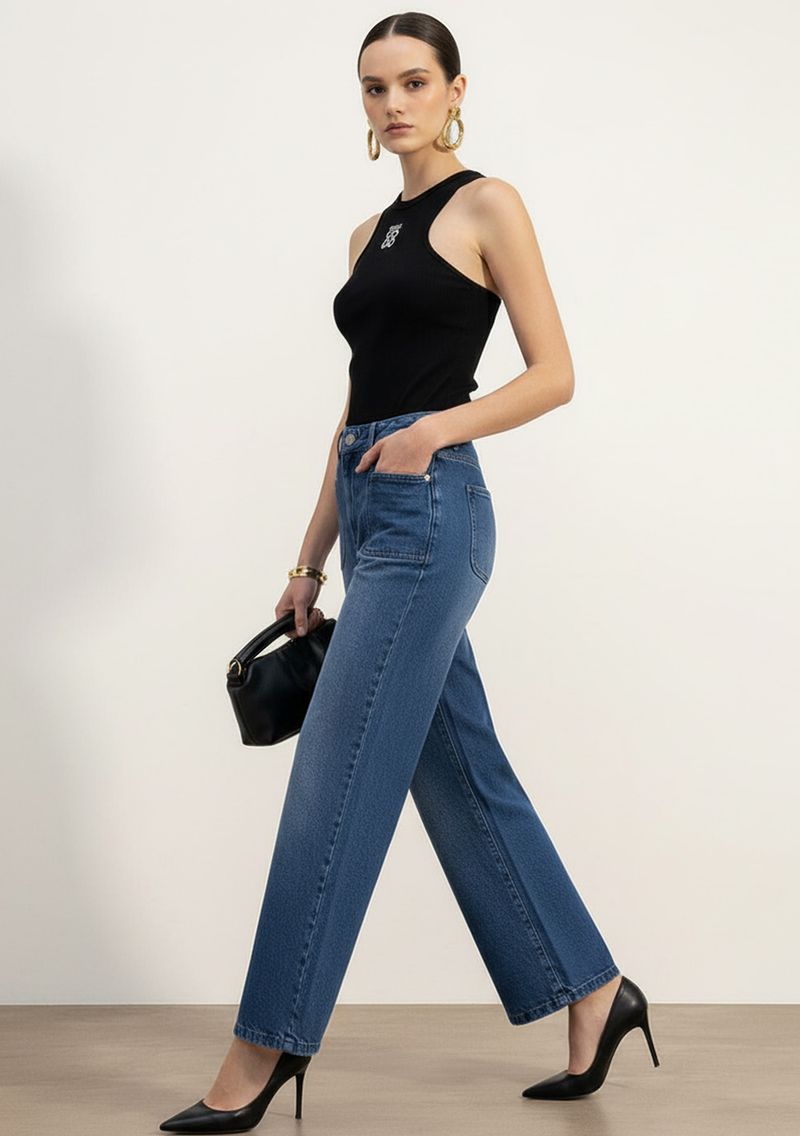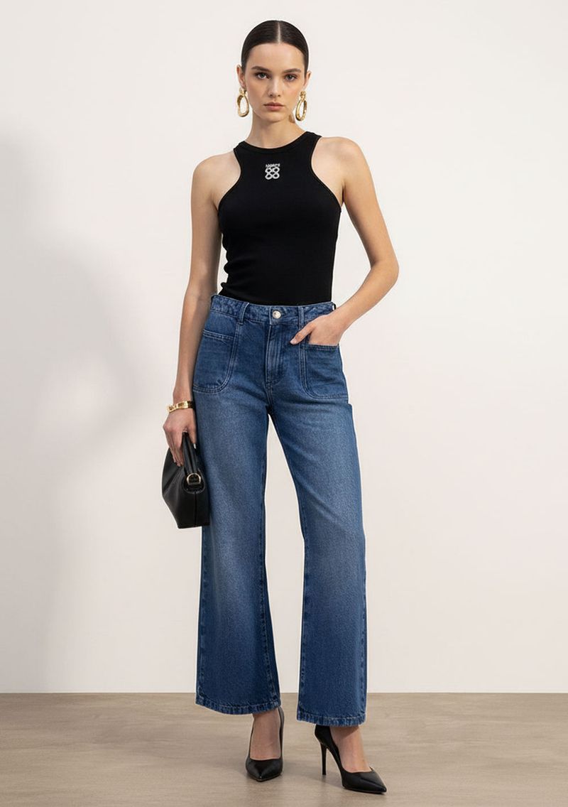 Regata Ajustada Decote Careca Padrão Preto