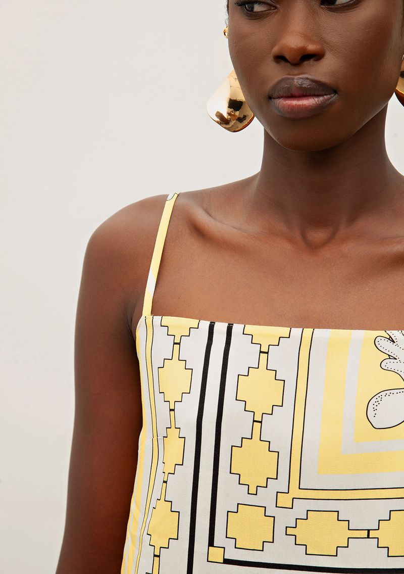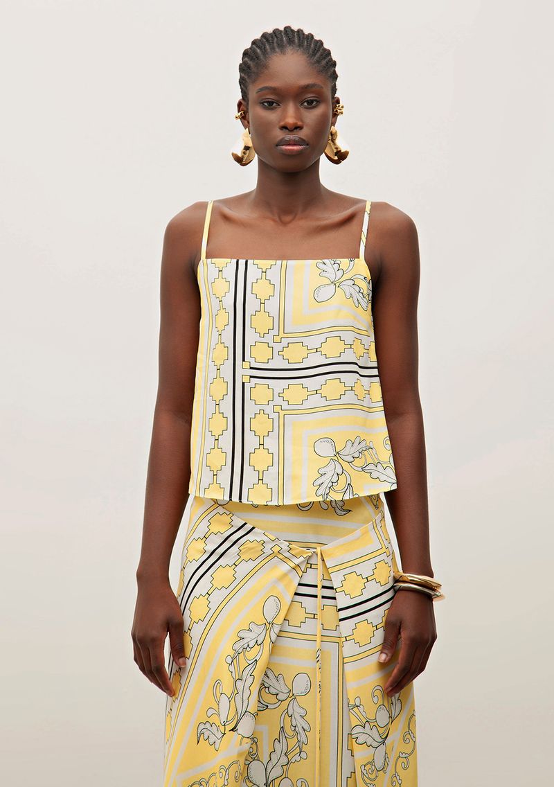 OUTLETFemininoRoupasBlusasTricotsAlfaiatariaRegata Iódice Decote Reto Com Amarração Amarelo