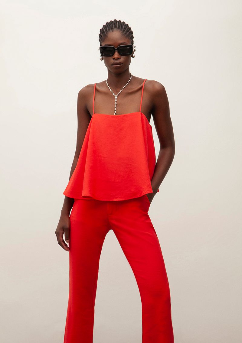 OUTLETFemininoRoupasBlusasTricotsAlfaiatariaRegata Iódice Decote Reto Com Recortes Vermelho
