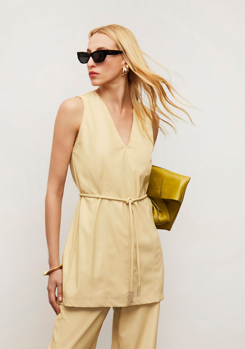 OUTLETFemininoRoupasBlusasTricotsAlfaiatariaRegata Iódice Solta Decote V Alongada Amarelo