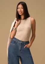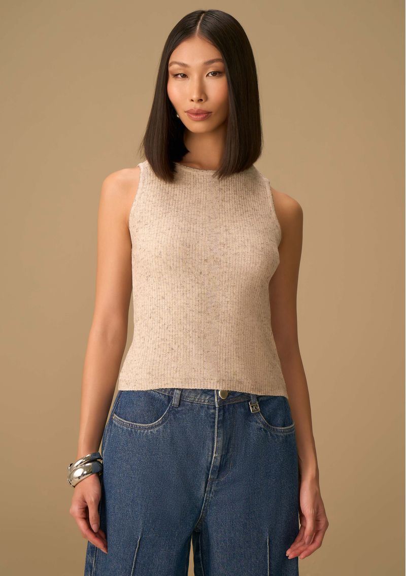 Regata Maria.Valentina Ajustada Decote Careca Padrão Bege