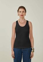 FemininoRoupasBlusasRegata Maria.Valentina Ajustada Decote Careca Padrão Preto