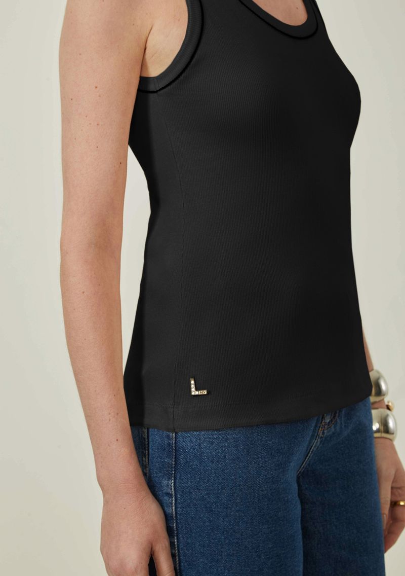 Regata Maria.Valentina Ajustada Decote Careca Padrão Preto
