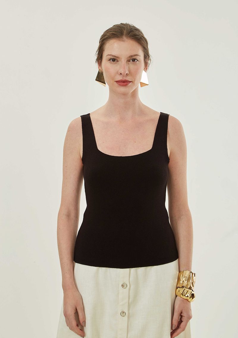 FemininoRoupasBlusasRegata Maria.Valentina Ajustada Decote Quadrado Padrão Preto